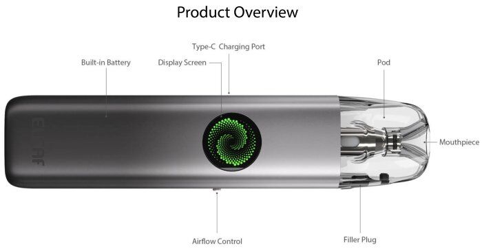 Bočné nastavenie prietoku vzduchu 🌬️ umožňuje, aby si si nastavil/a dokonalý zážitok z potiahnutia podľa svojich preferencií. Elegantný indikátor nabíjania 🟢 informuje o stave batérie, takže nikdy nezostaneš bez energie.