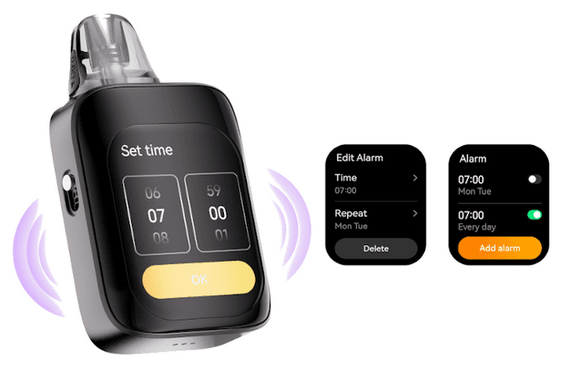 Vo vnútri sa nachádza integrovaná batéria s kapacitou 1300mAh, ktorá poskytuje dostatok energie na celodenné používanie. Stabilný výkon a možnosť regulácie v rozsahu 5–35W zaručujú konzistentnú chuť aj množstvo pary. Rýchle nabíjanie zabezpečuje USB-C port (5V/2A), vďaka ktorému je zariadenie pripravené na použitie v krátkom čase.