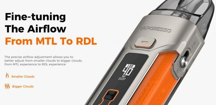 Nastaviteľný výkon a prietok vzduchu umožňujú úplnú kontrolu nad zážitkom – od RDL po MTL vapovanie podľa vašich preferencií.