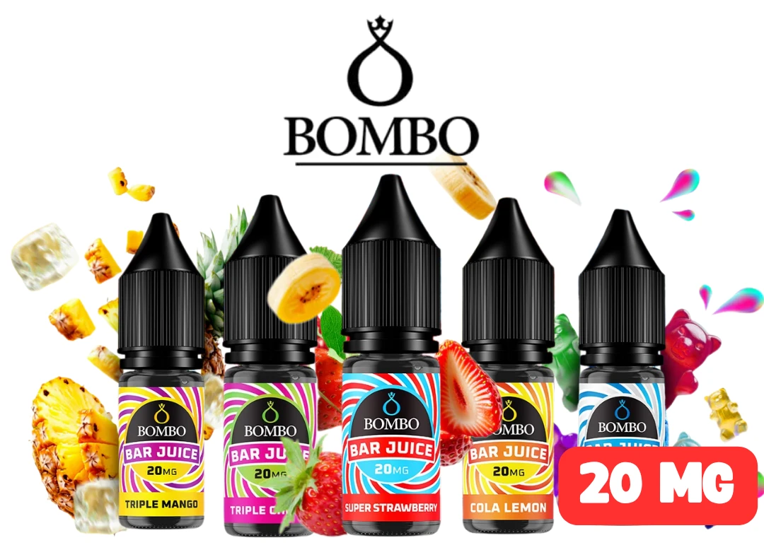 Séria Bombo Bar Juice prináša výrazné chute inšpirované jednorazovými e-cigaretami. Nikotínová soľ (20 mg) zabezpečuje rýchly nástup a jemný ťah, ideálny pre MTL vapovanie 👄.